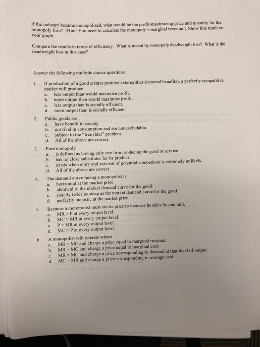 Economics Archive | May 15, 2016 | Chegg.com from d2vlcm61l7u1fs.cloudfront.net An unregulated market leads to equilibrium price and quantity determined at the intersection of the supply, or marginal private cost (mpc), curve and the demand curve: In economics, the equilibrium price represents the price that if practiced on the market will result in the fact that the whole quantity that is supplied is presumably sold, meaning that on the market the economic forces named generally as the supply and demand are balanced and that there are no external influences that may have an impact on the price mechanism. Let's think about the market for plastic bags plastic bags and i'm picking this market in particular because there might be some costs associated with plastic bags that aren't captured when you're only looking at it from the point of view from of the suppliers or the consumers so right over here you have a demand curve and that's really the demand coming from the supermarket's so this is the. This is the currently selected item. The marginal external cost (mec) is a constant $6 of production. To solve for these equilibrium values we simply need to equate mb (marginal benefit) to mc (marginal cost) in each of the different scenarios. With a free market, quantity and price are such that pmb = pmc. The market price will result in too _____ of the good for economic efficiency.